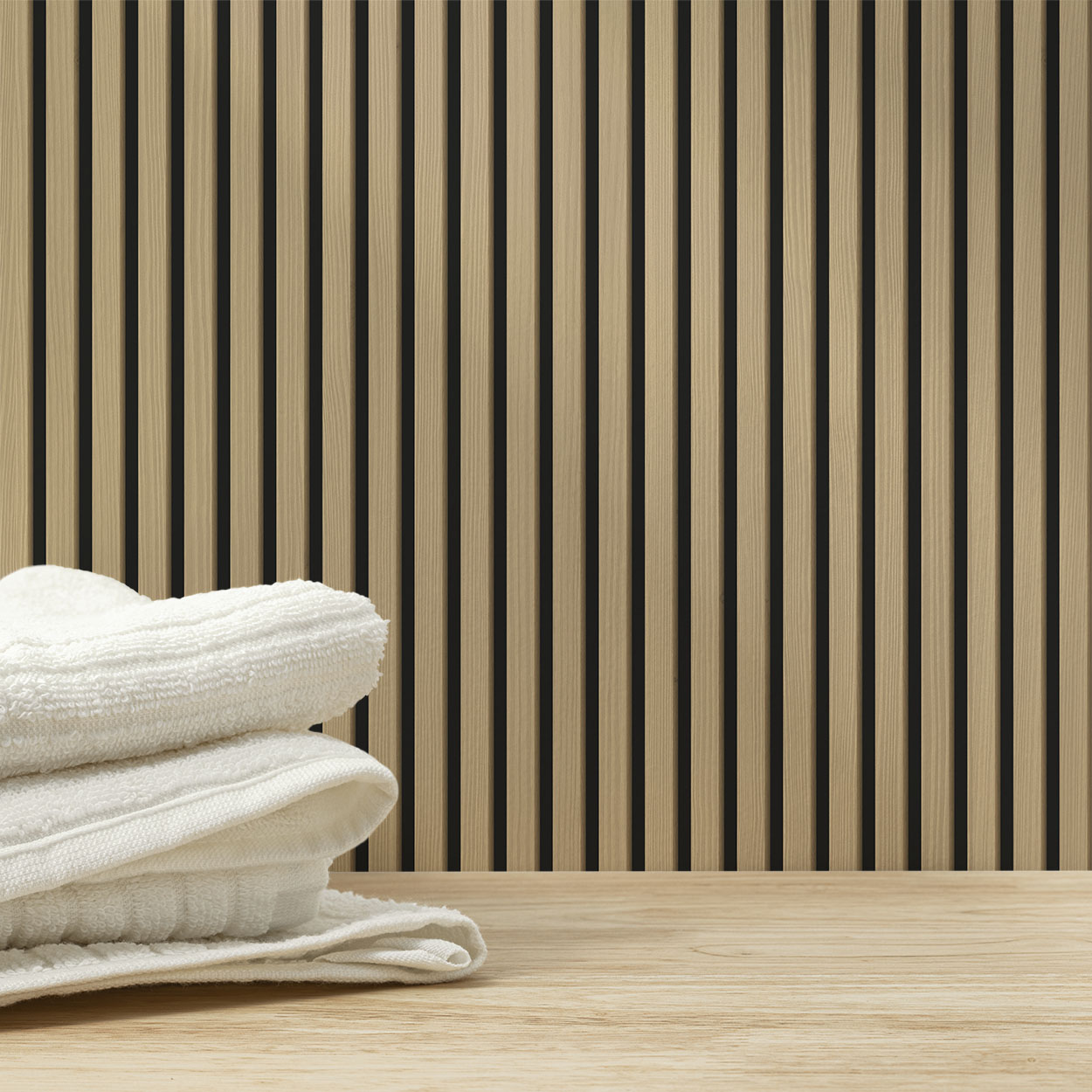 Lärchenholzlatten auf schwarzer Wand