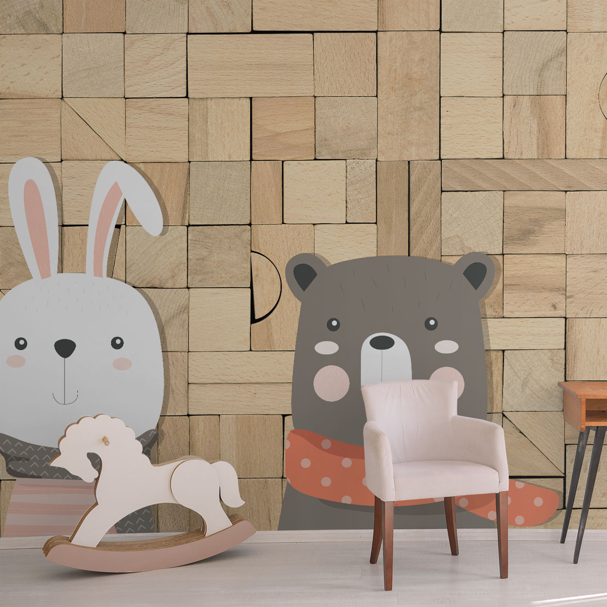 Hölzerne Spielblöcke mit Tieren